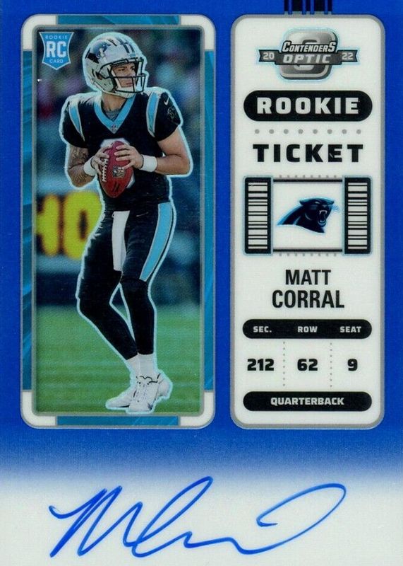 2022 Contenders Optic Matt Corral Blue Auto /75 Panthers Rookie Patriots #130