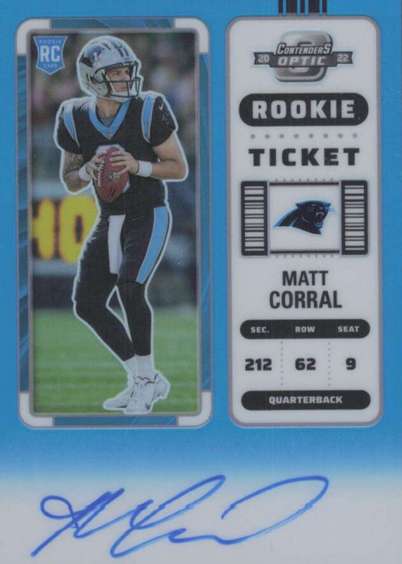 2022 Panini Contenders Optic Teal #130 Matt Corral RC Rookie AUTO PANTHERS /99
