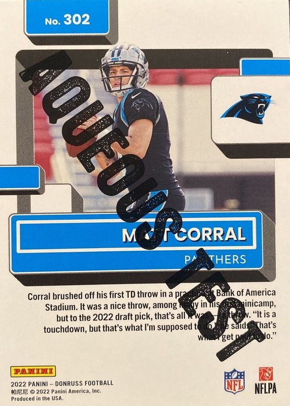 Matt Corral 2022 Donruss #302 Aqueous Test Rookie RAW Price Guide