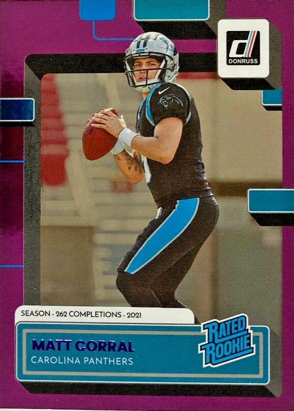 This card is 1 of 41 Matt Corral's card variations in the 2022 Donruss set being tracked by Sports Card Investor, including Base, Aqueous Test, Canvas, Jersey Number (/9), and No Name.