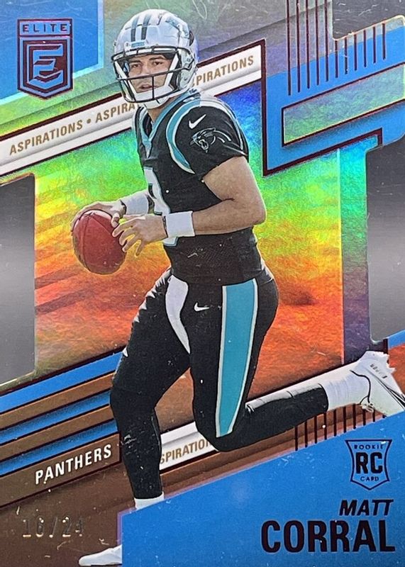 This card is 1 of 15 Matt Corral's card variations in the 2022 Elite set being tracked by Sports Card Investor, including Base Rookie /999, Aspirations (/91), Green, Pink, and Status (/9).