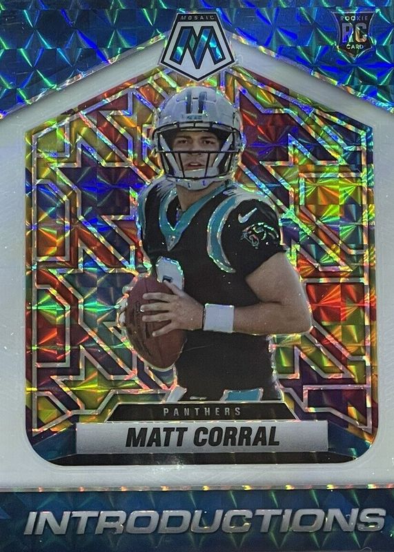 The Matt Corral 2022 Mosaic #I-4 Introductions - White /25 Rookie card in Raw condition has not changed in price in the last 30 days and was last sold for $50.00 .