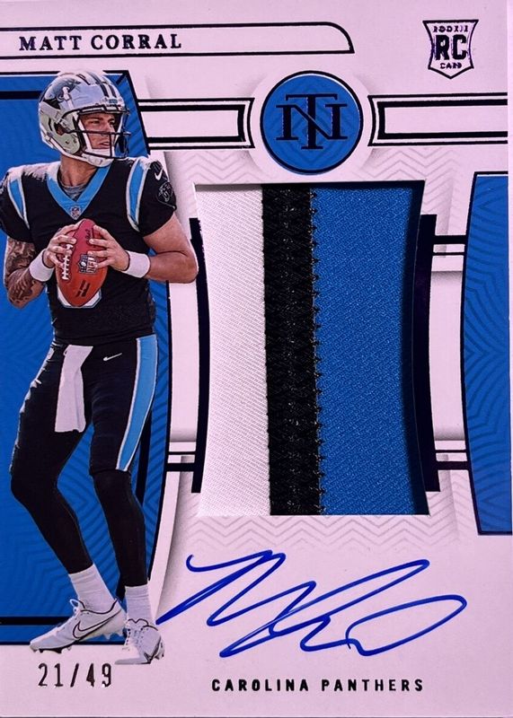 Matt Corral 2022 National Treasures #156 Rookie Patch Auto - Purple /49 RAW Price Guide