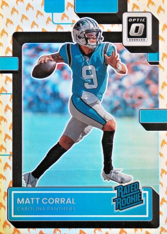 The Matt Corral 2022 Optic #204 Fire /(SSP) Rookie card in Raw condition has not changed in price in the last 30 days and was last sold for $4.99 .