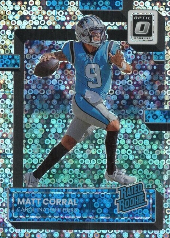 This card is 1 of 45 Matt Corral's card variations in the 2022 Optic set being tracked by Sports Card Investor, including Base, Holo, Holo Variation, Pink, and Purple Shock.