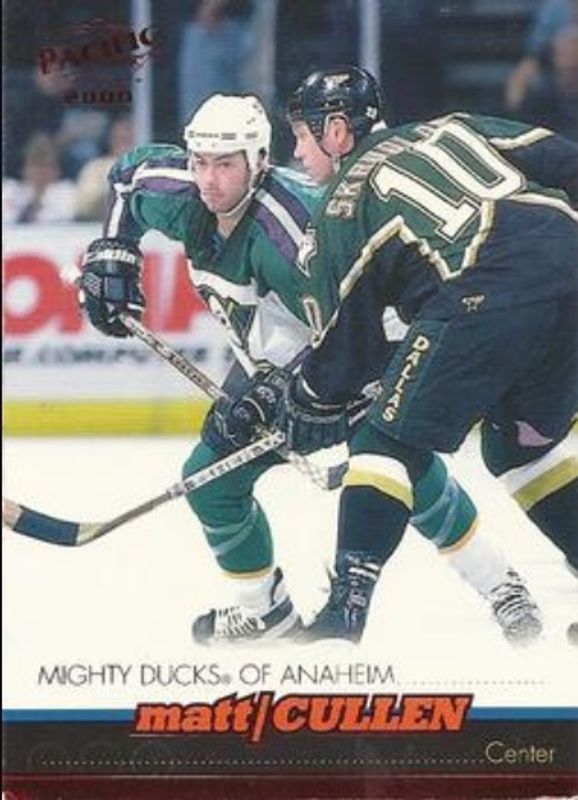The Matt Cullen 1999 Pacific #1 Red card is 1 of 7 Matt Cullen's card variations in the 1999 Pacific set being tracked by Sports Card Investor, including Base, Emerald Green /199, Gold /199, Copper /99, and Ice Blue /75.
