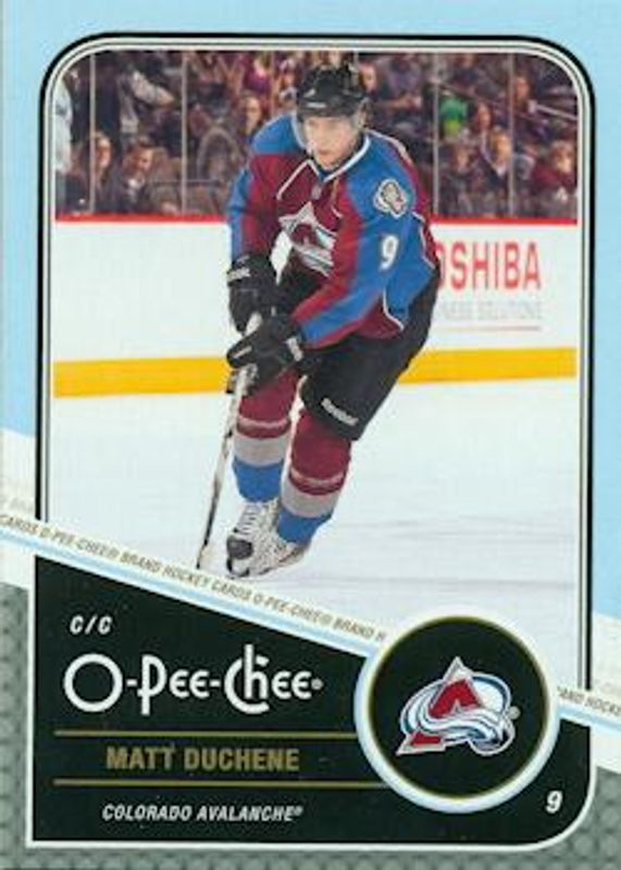 The Matt Duchene 2011 O-Pee-Chee #177 Base card is 1 of 7 Matt Duchene's card variations in the 2011 O-Pee-Chee set being tracked by Sports Card Investor, including Rainbow, Retro, Retro Blank Back, Black Rainbow /100, and In Action.