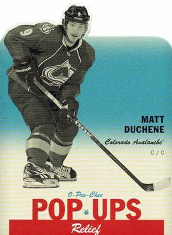 The Matt Duchene 2012 O-Pee-Chee #PU-11 Pop Ups card is 1 of 9 Matt Duchene's card variations in the 2012 O-Pee-Chee set being tracked by Sports Card Investor, including Base, Rainbow, Retro, Retro Blank Back, and Black Rainbow /100.