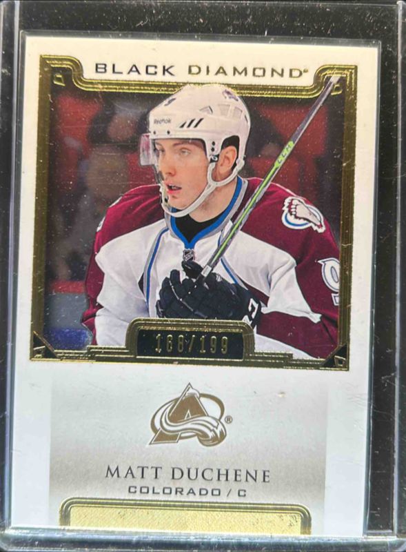 The Matt Duchene 2015 Upper Deck Black Diamond #BDB-MD Base /199 card is 1 of 6 Matt Duchene's card variations in the 2015 Upper Deck Black Diamond set being tracked by Sports Card Investor, including Pure Black /99, Jerseys /85, Pure Black Prime Relics /35, Diamond /5, and Pure Black Diamond /1.