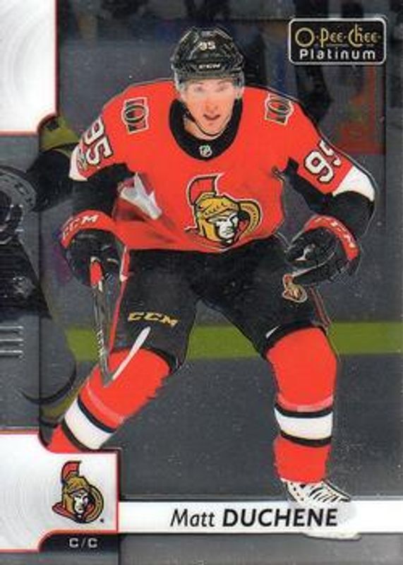 The Matt Duchene 2017 O-Pee-Chee Platinum #26 Base card is 1 of 15 Matt Duchene's card variations in the 2017 O-Pee-Chee Platinum set being tracked by Sports Card Investor, including Rainbow, Violet Pixels, Red Prism /199, Royal Blue Cubes /99, and Seismic Gold /50.