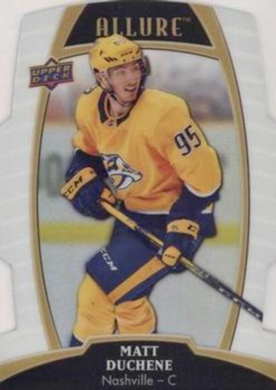 The Matt Duchene 2019 Upper Deck Allure #23 White Rainbow card is 1 of 16 Matt Duchene's card variations in the 2019 Upper Deck Allure set being tracked by Sports Card Investor, including Base, Pewter, Red Rainbow, Yellow Taxi, and Orange Slice /199.