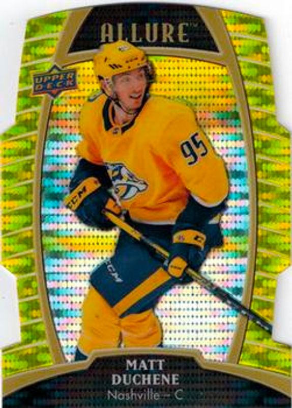 The Matt Duchene 2019 Upper Deck Allure #23 Yellow Taxi card is 1 of 16 Matt Duchene's card variations in the 2019 Upper Deck Allure set being tracked by Sports Card Investor, including Base, Pewter, Red Rainbow, White Rainbow, and Orange Slice /199.