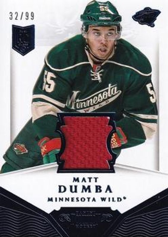 The Matt Dumba 2013 Panini Rookie Anthology #D-MDB 2013 Panini Dominion Update: Authentic Material /99 card is 1 of 34 Matt Dumba's card variations in the 2013 Panini Rookie Anthology set being tracked by Sports Card Investor, including Purple /1, 2013 Panini Update, 2013 Panini Update:, 2013 Panini Update: Rookie Autographs, and 2013 Panini Update: Rookie Autographs Spring Expo Cracked Ice - Black.