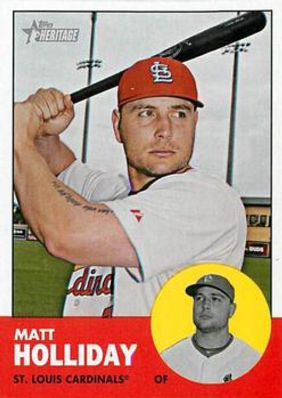 The Matt Holliday 2012 Topps Heritage #190 Base card is 1 of 9 Matt Holliday's card variations in the 2012 Topps Heritage set being tracked by Sports Card Investor, including Black, Target Red Border, Chrome /1963, Chrome Refractor /563, and Chrome Black Refractor /63.
