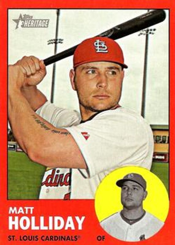 The Matt Holliday 2012 Topps Heritage #190 Target Red Border card is 1 of 9 Matt Holliday's card variations in the 2012 Topps Heritage set being tracked by Sports Card Investor, including Base, Black, Chrome /1963, Chrome Refractor /563, and Chrome Black Refractor /63.