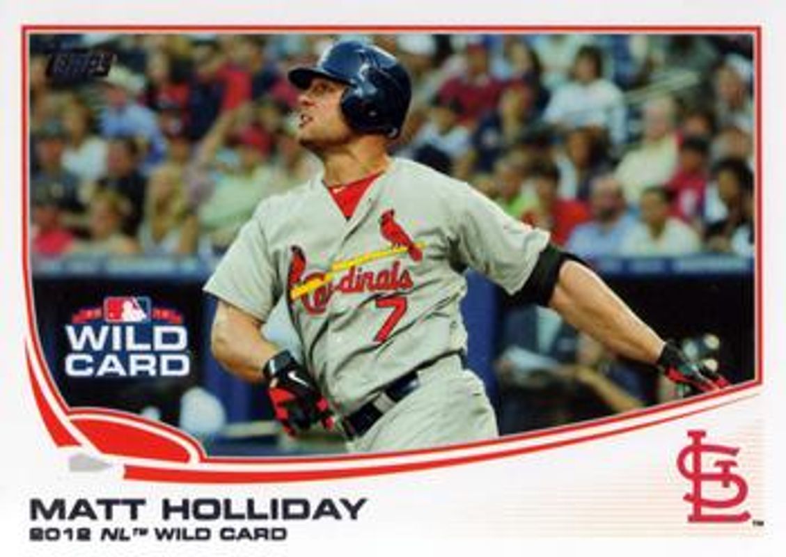 The Matt Holliday 2013 Topps #125 Base card is 1 of 50 Matt Holliday's card variations in the 2013 Topps set being tracked by Sports Card Investor, including 1972 Topps Minis, Base, Chasing History, Chasing History - Gold Foil, and Chasing History Relics.