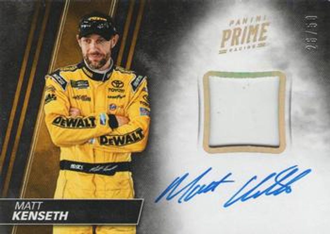 The Matt Kenseth 2018 Prime NASCAR #AM-MK Autographs Materials Holo Gold /10 card is 1 of 41 Matt Kenseth's card variations in the 2018 Prime NASCAR set being tracked by Sports Card Investor, including Driver Signatures /99, Prime Signatures /99, Shadowbox Signatures /99, Signatures Tires /99, and Prime Signatures Holo Gold /50.