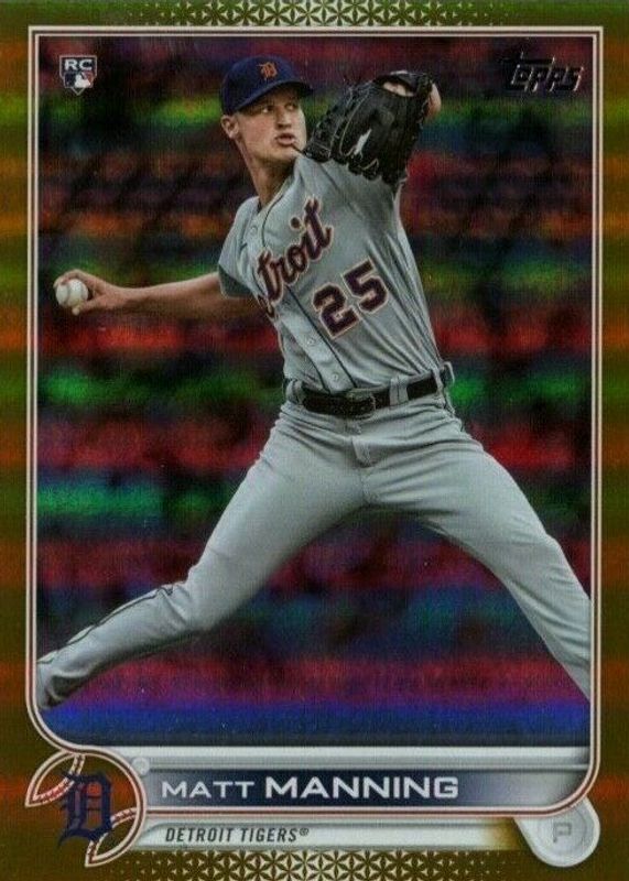 This card is 1 of 17 Matt Manning's card variations in the 2022 Topps set being tracked by Sports Card Investor, including Base, Rainbow Foil, Royal Blue, Gold /2022, and Green Foil /499.