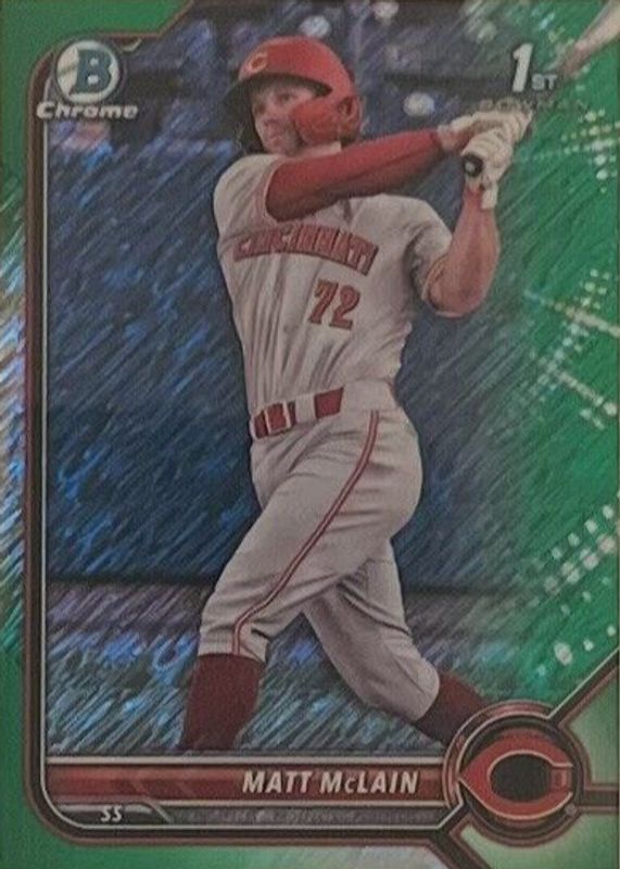 Auctions Ending Soon for Matt McLain 2022 Bowman Chrome #BCP-245 Prospects - Green Shimmer Refractor /99 (1st) RAW