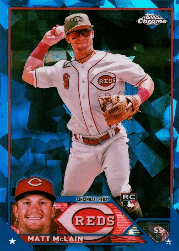 The Matt McLain 2023 Topps Chrome Update Sapphire Edition #USCS199 Base Rookie card in Raw condition has moved up $7.74 (+344%) in the last 30 days and was last sold for $9.99 .