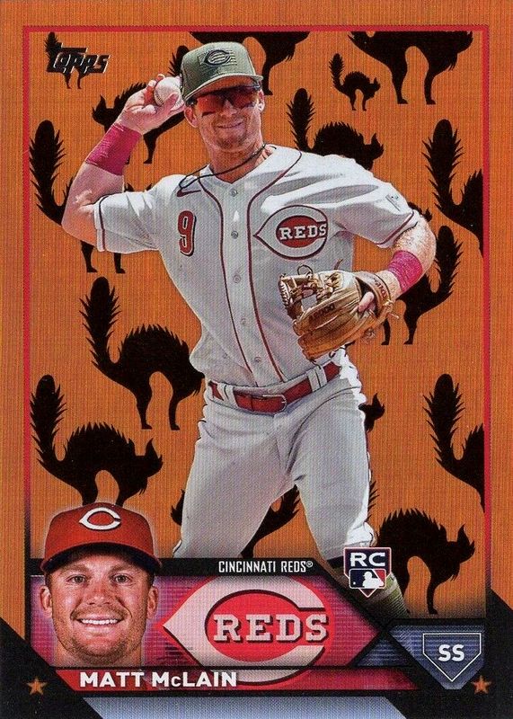 This card is 1 of 33 Matt McLain's card variations in the 2023 Topps Update set being tracked by Sports Card Investor, including Base, Ghost Foil, Gold Foil, Jack O' Lantern Foil, and Orange & Black Foil.