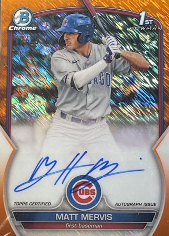 2023 Bowman Chrome Matt Mervis 1st Orange Shimmer Auto 25/25 Chicago Cubs SSP