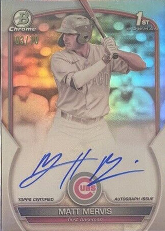 Auctions Ending Soon for Matt Mervis 2023 Bowman #CPA-MM Chrome Prospect Auto - Pearl Refractor /10 (1st) Rookie RAW