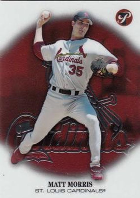 The Matt Morris 2002 Topps Pristine #102 Base /799 card is 1 of 3 Matt Morris' card variations in the 2002 Topps Pristine set being tracked by Sports Card Investor, including Refractor /149, and Gold Refractor /70.