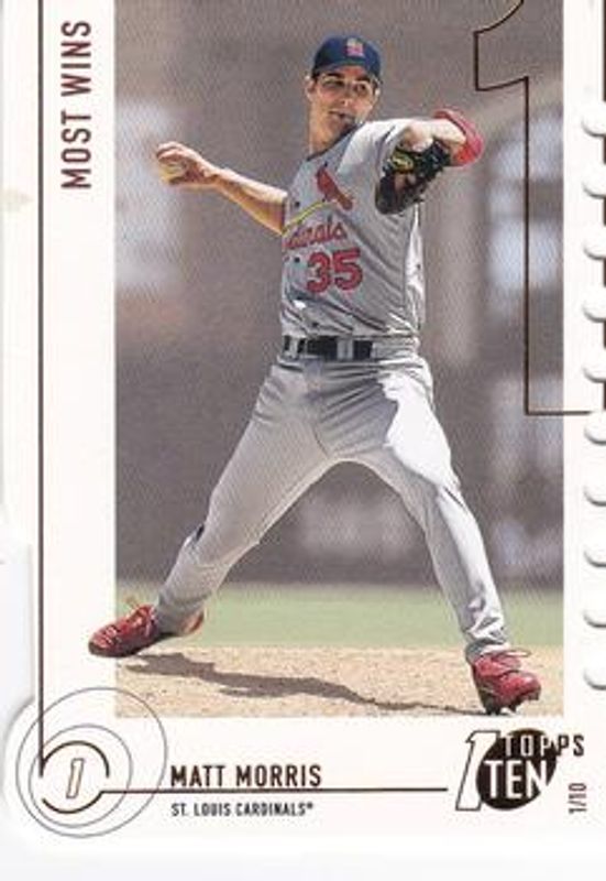 The Matt Morris 2002 Topps Ten #131 Die-Cut card is 1 of 4 Matt Morris' card variations in the 2002 Topps Ten set being tracked by Sports Card Investor, including #131 Base, #149 Base, and #149 Die-Cut.
