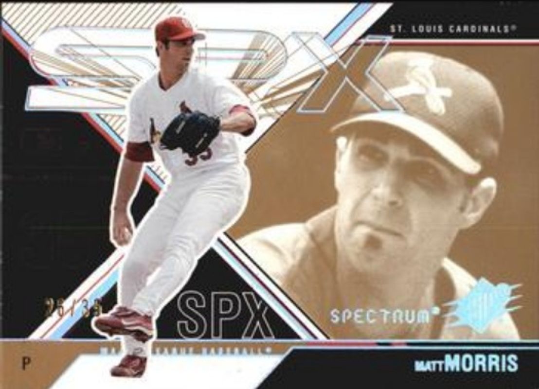 The Matt Morris 2003 SPx #109 Spectrum /25 card is 1 of 2 Matt Morris' card variations in the 2003 SPx set being tracked by Sports Card Investor, including Base /999.