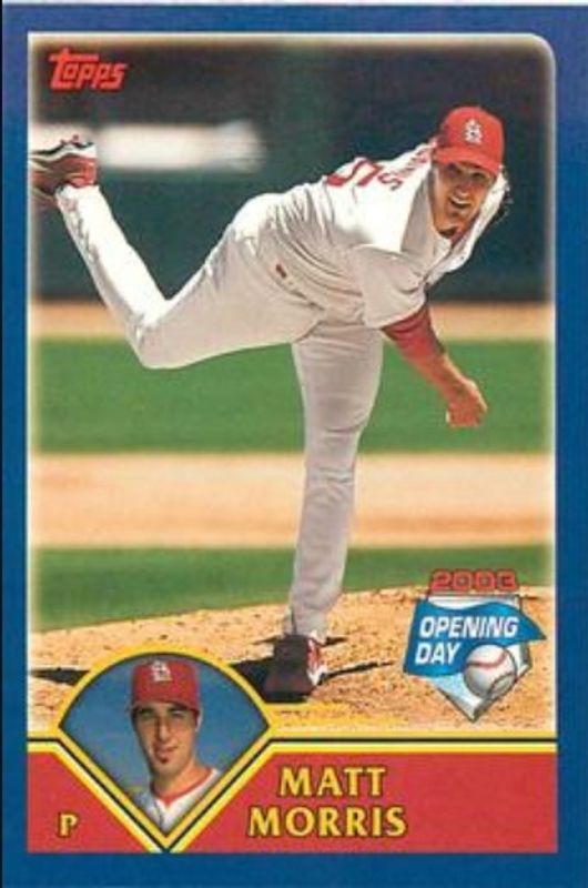 The Matt Morris 2003 Topps Opening Day Mini Stickers card is 1 of 2 Matt Morris' card variations in the 2003 Topps Opening Day set being tracked by Sports Card Investor, including Base.