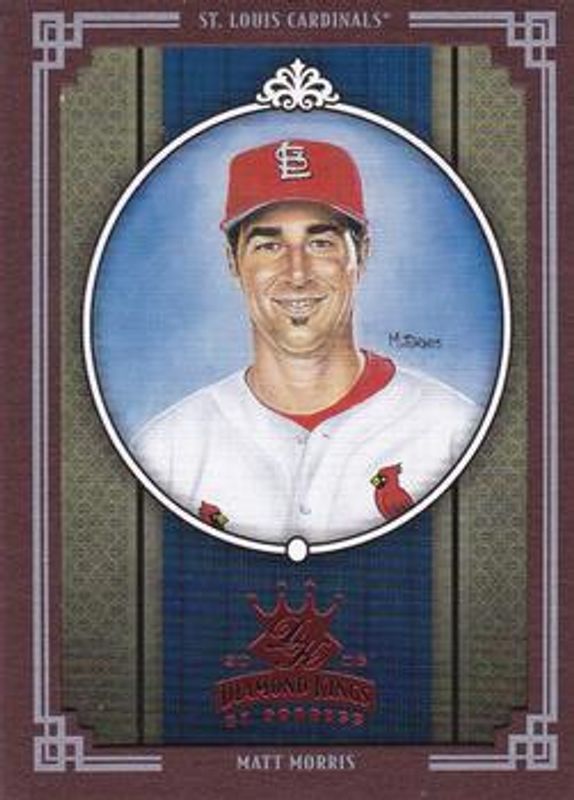 The Matt Morris 2005 Diamond Kings #213 Framed Red card is 1 of 30 Matt Morris' card variations in the 2005 Diamond Kings set being tracked by Sports Card Investor, including Base, Non Canvas, Framed Blue /100, Bronze /50, and Framed Green /50.