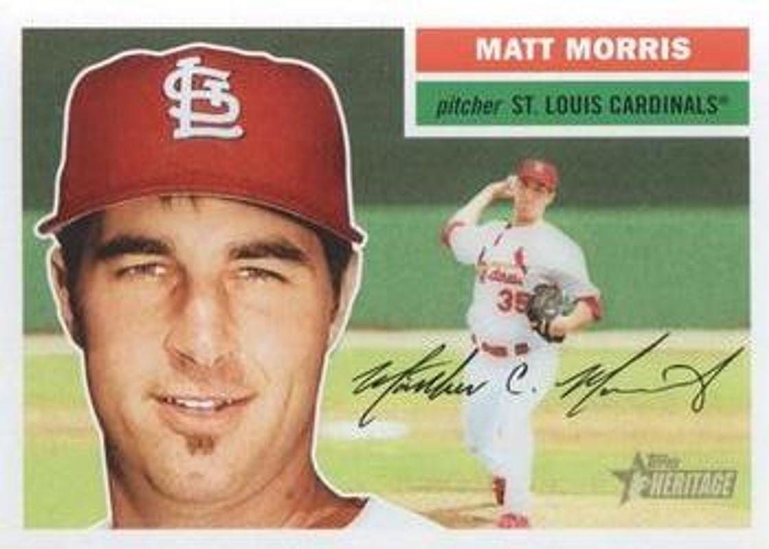 The Matt Morris 2005 Topps Heritage #170 Base card is 1 of 2 Matt Morris' card variations in the 2005 Topps Heritage set being tracked by Sports Card Investor, including Base.