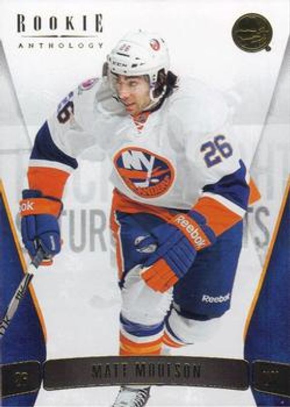 The Matt Moulson 2011 Panini Rookie Anthology #37 Base /99 card is 1 of 5 Matt Moulson's card variations in the 2011 Panini Rookie Anthology set being tracked by Sports Card Investor, including Printing Plates Black /1, Printing Plates Cyan /1, Printing Plates Magenta /1, and Printing Plates Yellow /1.