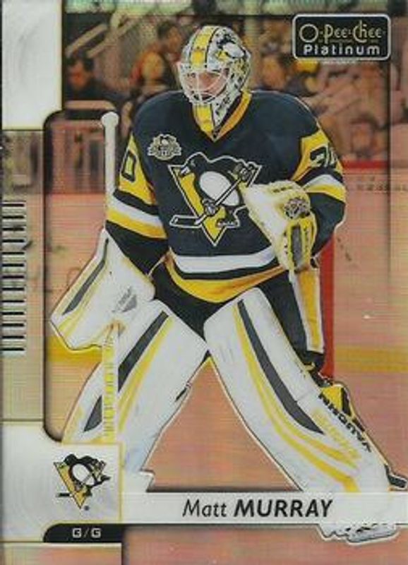 The Matt Murray 2017 O-Pee-Chee Platinum #90 Rainbow card is 1 of 20 Matt Murray's card variations in the 2017 O-Pee-Chee Platinum set being tracked by Sports Card Investor, including Base, Violet Pixels, Red Prism /199, Royal Blue Cubes /99, and Seismic Gold /50.