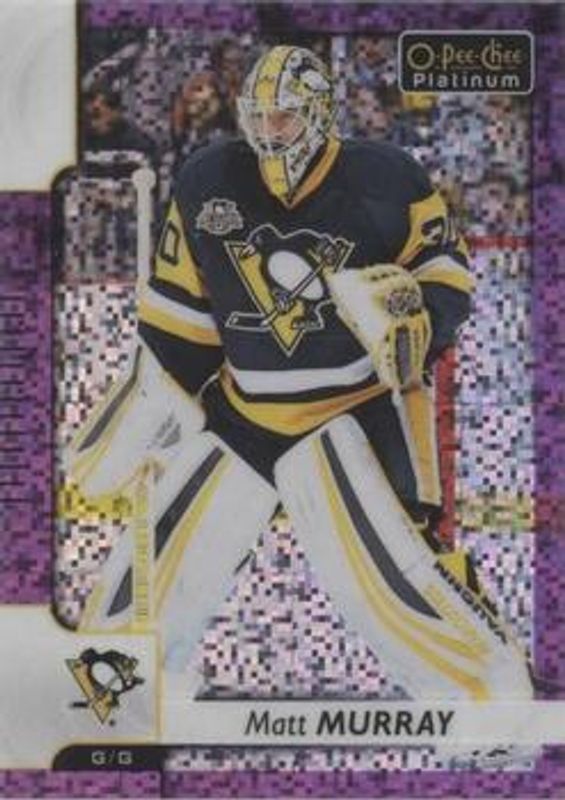 The Matt Murray 2017 O-Pee-Chee Platinum #90 Violet Pixels card is 1 of 20 Matt Murray's card variations in the 2017 O-Pee-Chee Platinum set being tracked by Sports Card Investor, including Base, Rainbow, Red Prism /199, Royal Blue Cubes /99, and Seismic Gold /50.