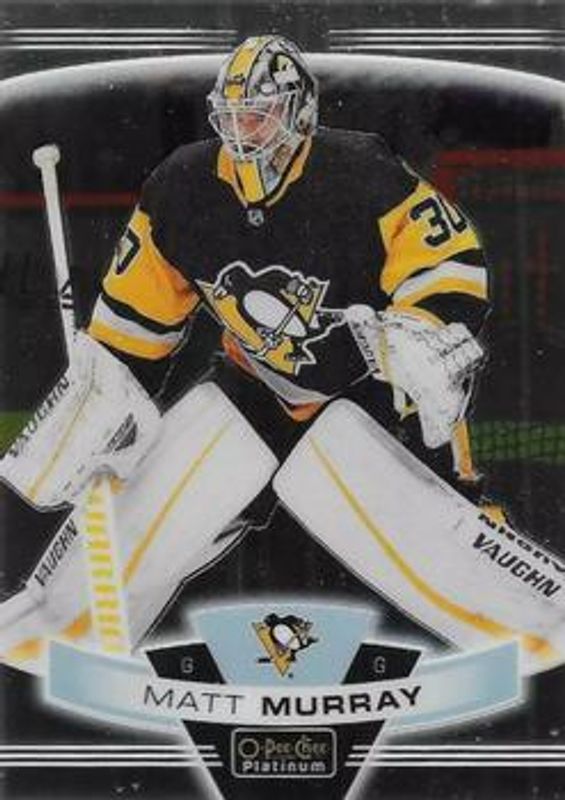 The Matt Murray 2019 O-Pee-Chee Platinum #146 Base card is 1 of 12 Matt Murray's card variations in the 2019 O-Pee-Chee Platinum set being tracked by Sports Card Investor, including Matte Pink, Rainbow, Sunset, Violet Pixels /399, and Red Prism /199.