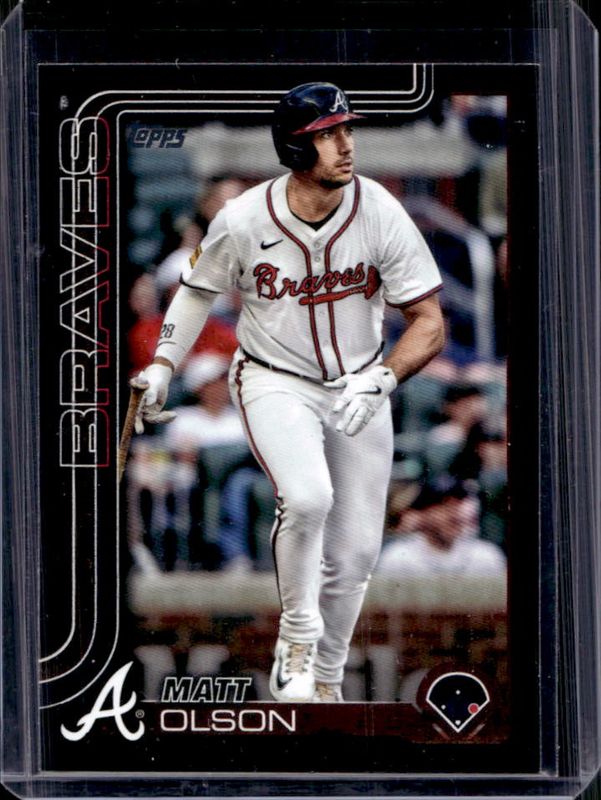 The Matt Olson 2025 Topps #145 Black /74 card is 1 of 204 Matt Olson's card variations in the 2025 Topps set being tracked by Sports Card Investor, including Base, Aqua Holo Foil, Diamante Foil, Holo Foil, and Pink Diamante Foil.