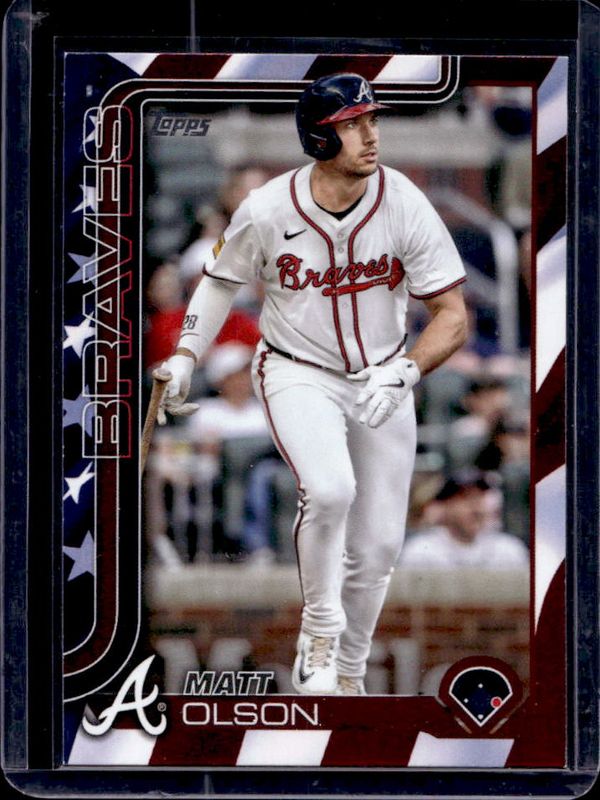 The Matt Olson 2025 Topps #145 Independence Day /76 card is 1 of 204 Matt Olson's card variations in the 2025 Topps set being tracked by Sports Card Investor, including Base, Aqua Holo Foil, Diamante Foil, Holo Foil, and Pink Diamante Foil.