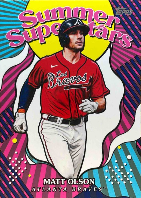 The Matt Olson 2025 Topps #SS-5 Summer Superstars card is 1 of 204 Matt Olson's card variations in the 2025 Topps set being tracked by Sports Card Investor, including Base, Aqua Holo Foil, Diamante Foil, Holo Foil, and Pink Diamante Foil.
