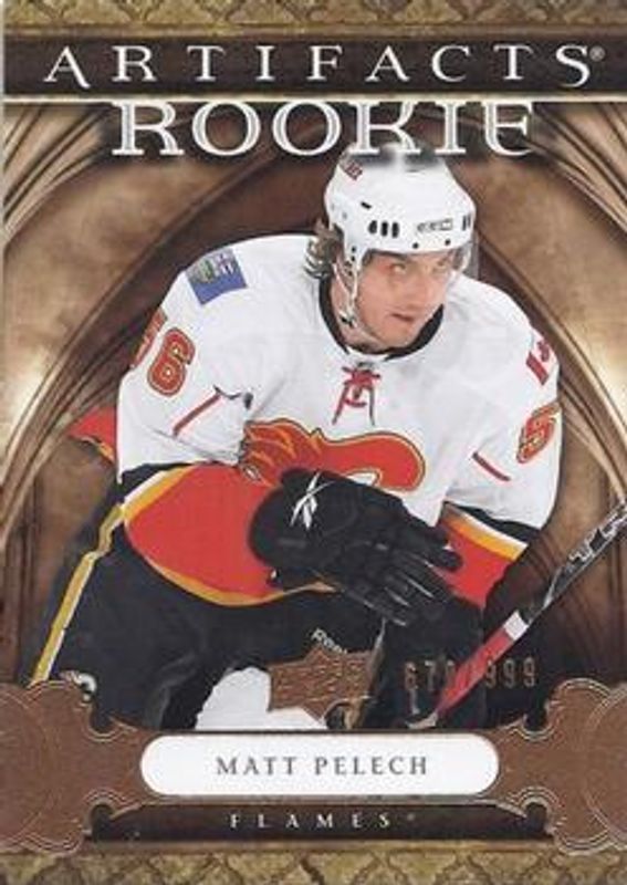 The Matt Pelech 2009 Upper Deck Artifacts #200 Base /699 Rookie card is 1 of 6 Matt Pelech's card variations in the 2009 Upper Deck Artifacts set being tracked by Sports Card Investor, including Silver /75, Gold /50, Silver Spectrum /25, Gold Spectrum /10, and Black /5.