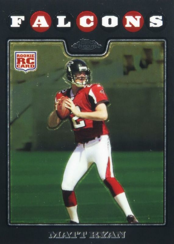 The Matt Ryan 2008 Topps Chrome #TC166 Base Rookie card in Raw condition has moved up $3.45 (+138%) in the last 30 days and was last sold for $5.95 .