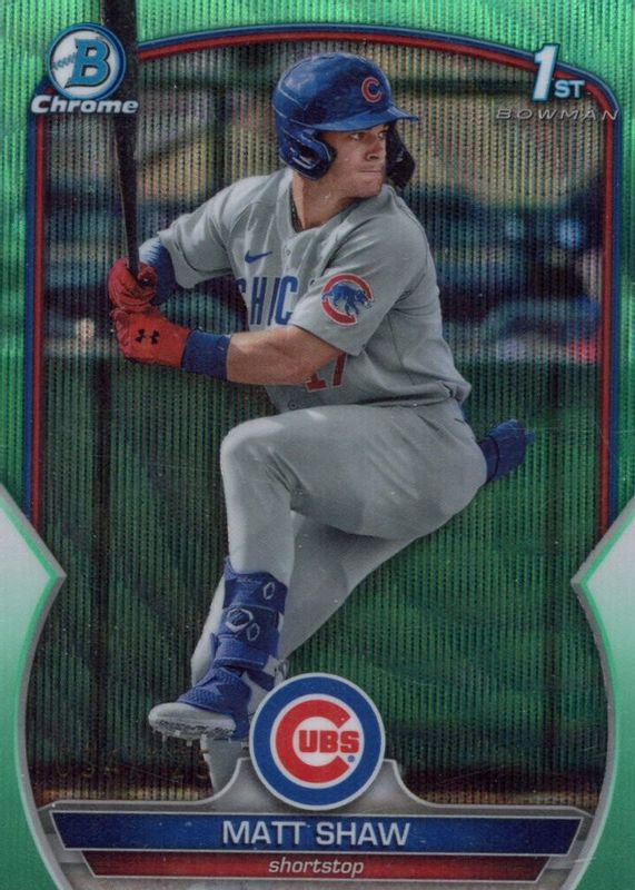2023 Bowman Chrome Draft Aqua Wave Refractors Matt Shaw CUBS 1ST ROOKIE 106/125