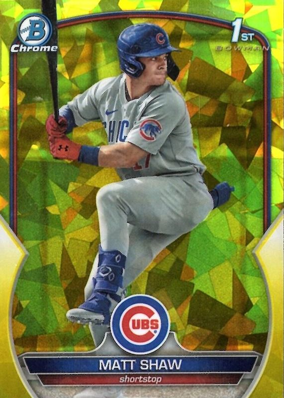 2023 Bowman Draft Chrome Sapphire MATT SHAW YELLOW 1ST ROOKIE RC SP 01/75 Cubs
