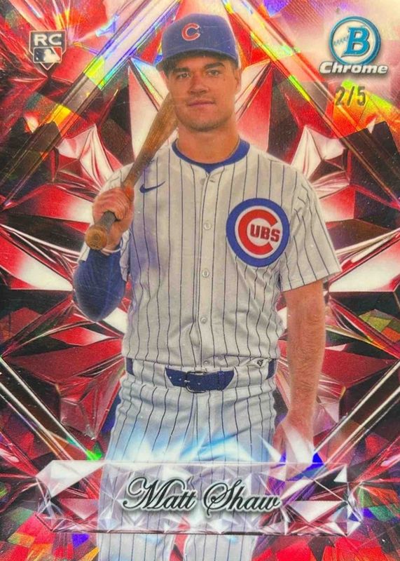 Auctions Ending Soon for Matt Shaw 2025 Bowman Chrome Sapphire Edition #SS-14 Sapphire Selections - Red /5 Rookie RAW