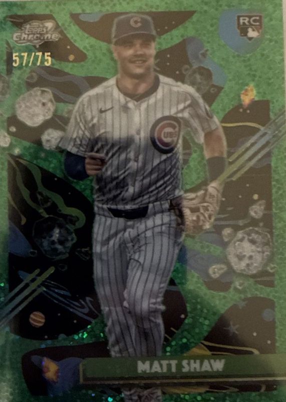 Auctions Ending Soon for Matt Shaw 2025 Topps Chrome Cosmic #35 Green Space Dust Refractor /75 Rookie RAW