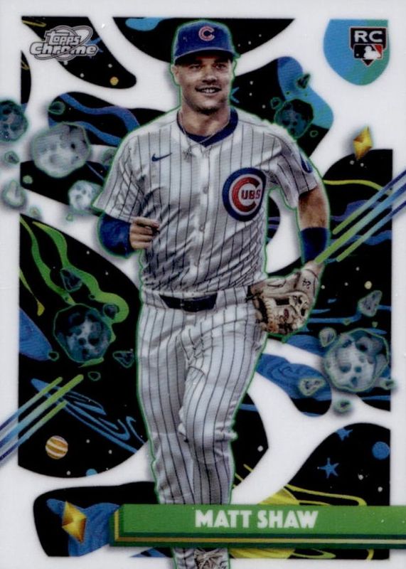 This card is 1 of 58 Matt Shaw's card variations in the 2025 Topps Chrome Cosmic set being tracked by Sports Card Investor, including Base, Nucleus Refractor, Refractor, Aqua Equinox Refractor /199, and Purple Nebula Refractor /150.