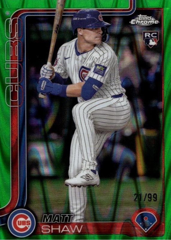Best Prices Available For Sale of Matt Shaw 2025 Topps Chrome #219 Green RayWave Refractor /99