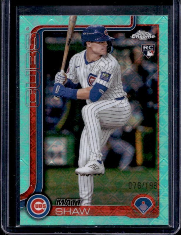 MATT SHAW 2025 TOPPS CHROME LOGOFRACTOR AQUA REFRACTOR RC #109/199 **CUBS** #219