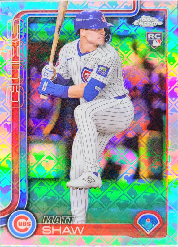 The Matt Shaw 2025 Topps Chrome Logofractor Edition #219 Base Rookie card in Raw condition has moved down -$0.50 (-25.0%) in the last 30 days and was last sold for $1.50 .